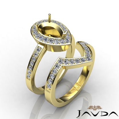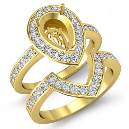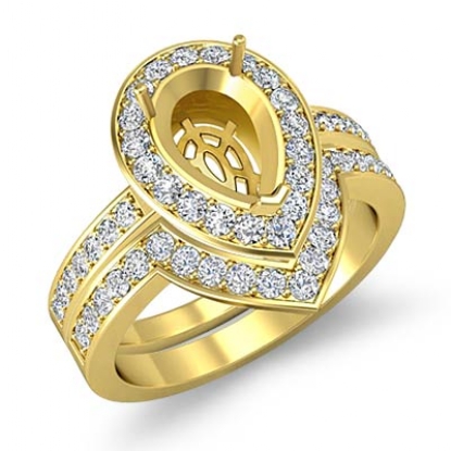 Diamond Halo Ring Pear Bridal Sets 18k Gold Semi Mount (1.4Ct. tw.)