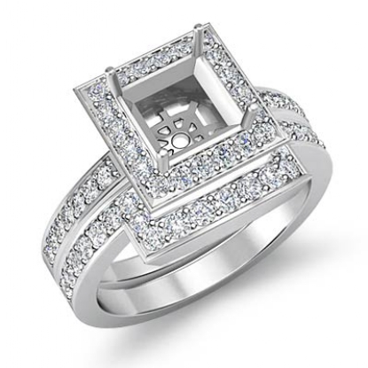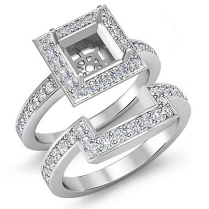 Diamond Engagement Ring Princess Bridal Set Platinum Halo SemiMount (1.4Ct. tw.)