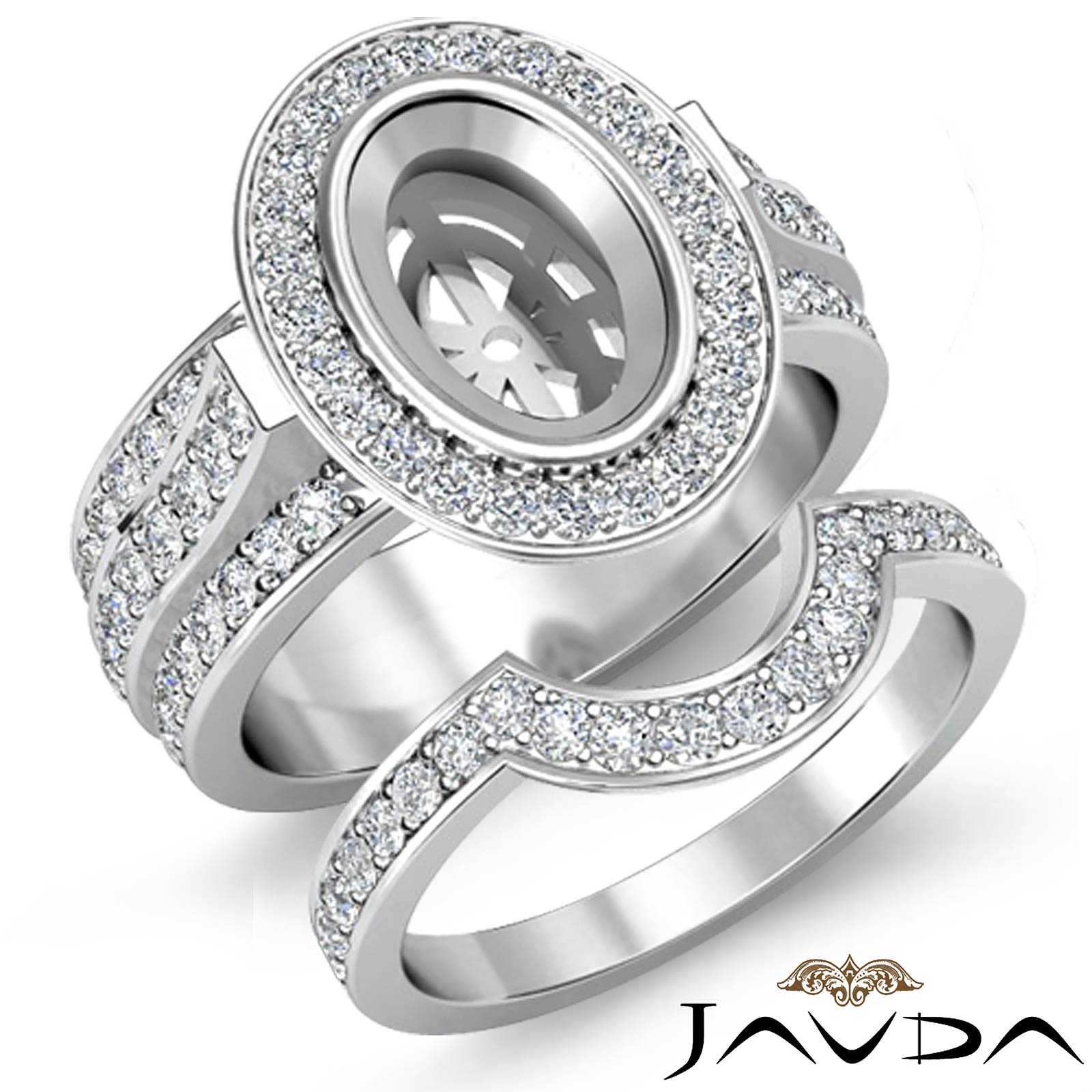 Diamond Engagement Pave Ring Bridal Sets 18k W Gold Oval Semi Mount (2.3Ct. tw.)
