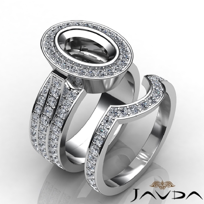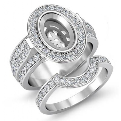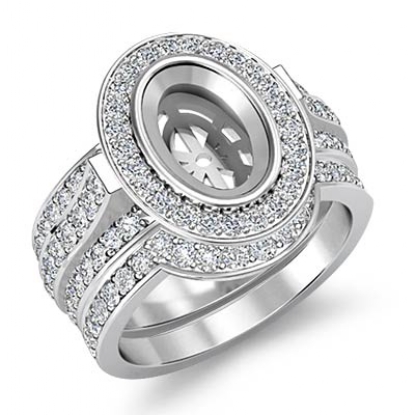 Diamond Engagement Pave Ring Bridal Sets Platinum Oval Semi Mount (2.3Ct. tw.)