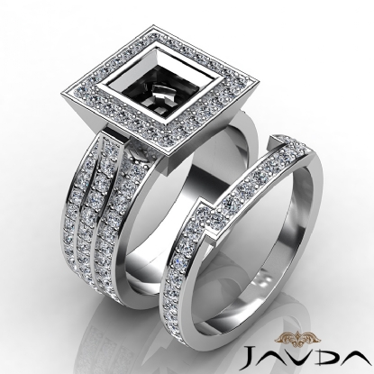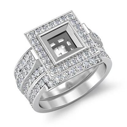 Diamond Engagement Pave Ring Bridal Sets 18k W Gold Princess Setting (2.3Ct. tw.)