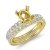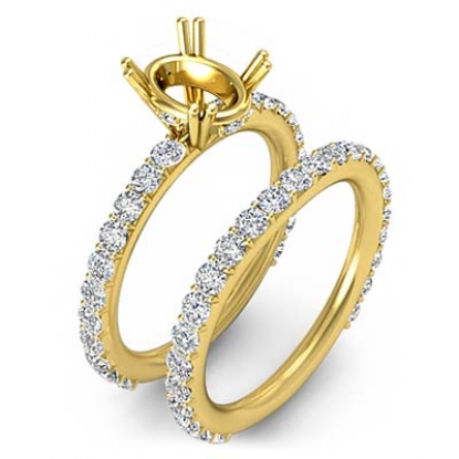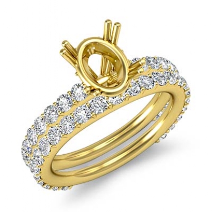 One-of-a-kind, this engagement ring and matching band feature an oval semi mount in prong setting and round pave set diamonds on the shank. This bridal set is made in 14k Gold Yellow. (1.5Ct. tw.)