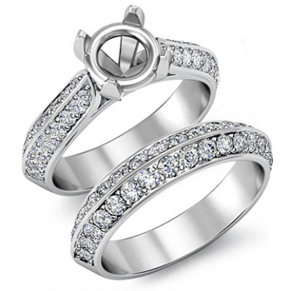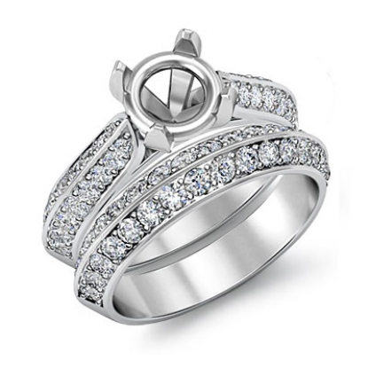 Pave Diamond Engagement Ring Round Semi Mount Bridal Sets Platinum (1Ct. tw.)