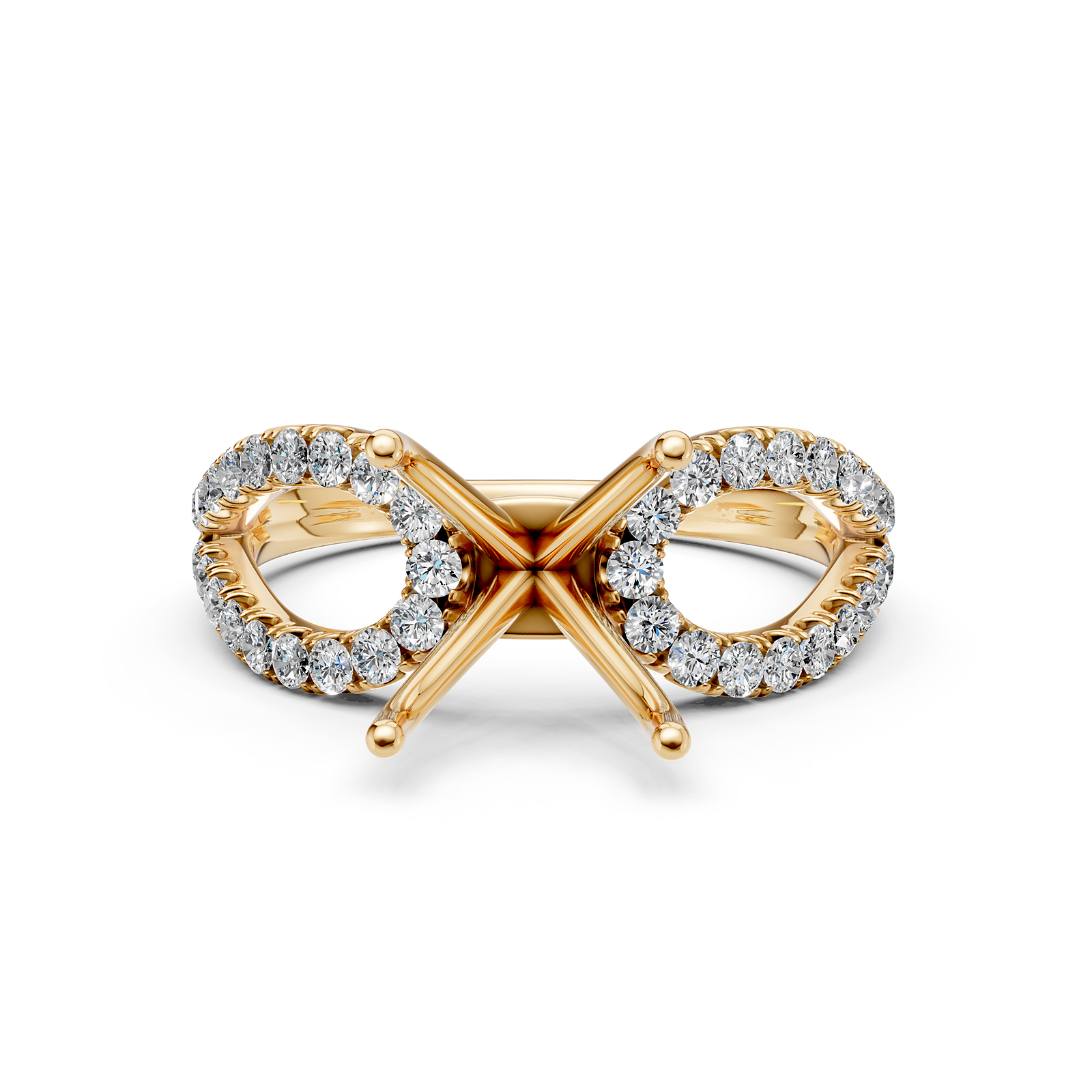 A wreath of diamonds surrounds the round semi mount engagement ring, with round diamonds on the split shank. This diamond ring is made in glistening 18k Gold Yellow. (0.45Ct. tw.)