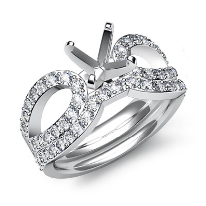 Diamond Engagement Ring Round Bridal Set Platinum Split Curve Shank (0.9Ct. tw.)
