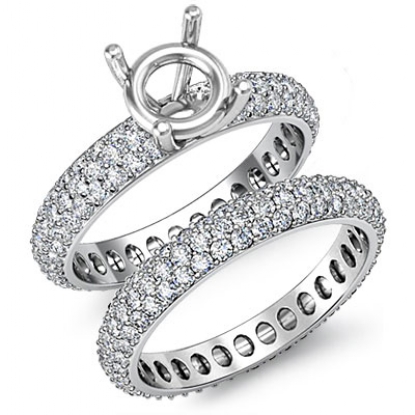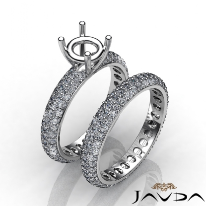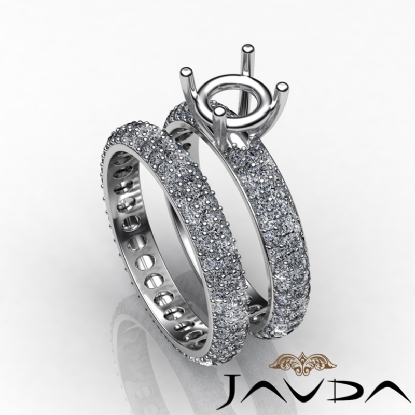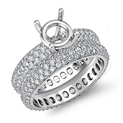 Stunning and intricate, this 18k Gold White semi mount diamond engagement ring features intricate pave set diamonds on this bridal set. This set comes with a beautiful matching band. (3.8Ct. tw.)