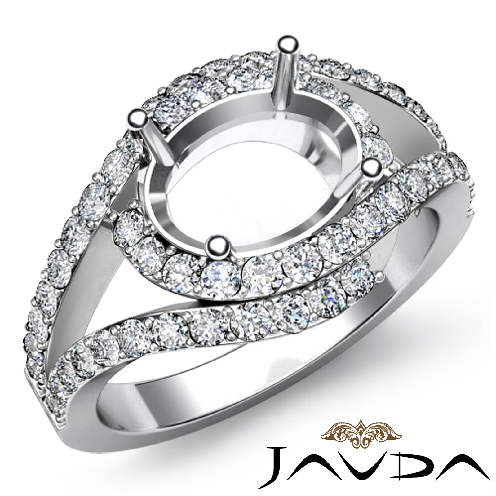 Diamond Engagement Oval Semi Mount Ring 18k W Gold Curve Shank (0.63Ct. tw.)