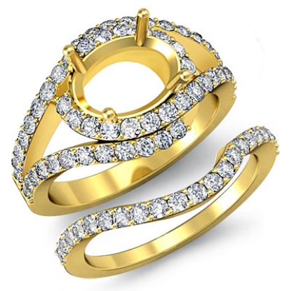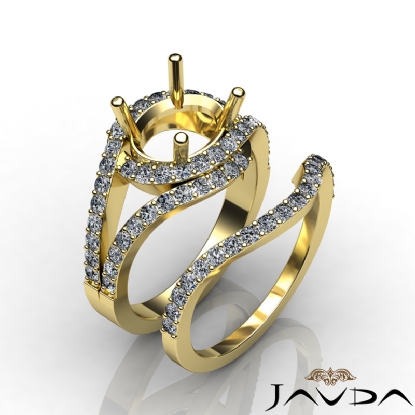 Round Diamond Engagement Oval Ring Bridal Set 14k Gold Pave Setting (1.2Ct. tw.)