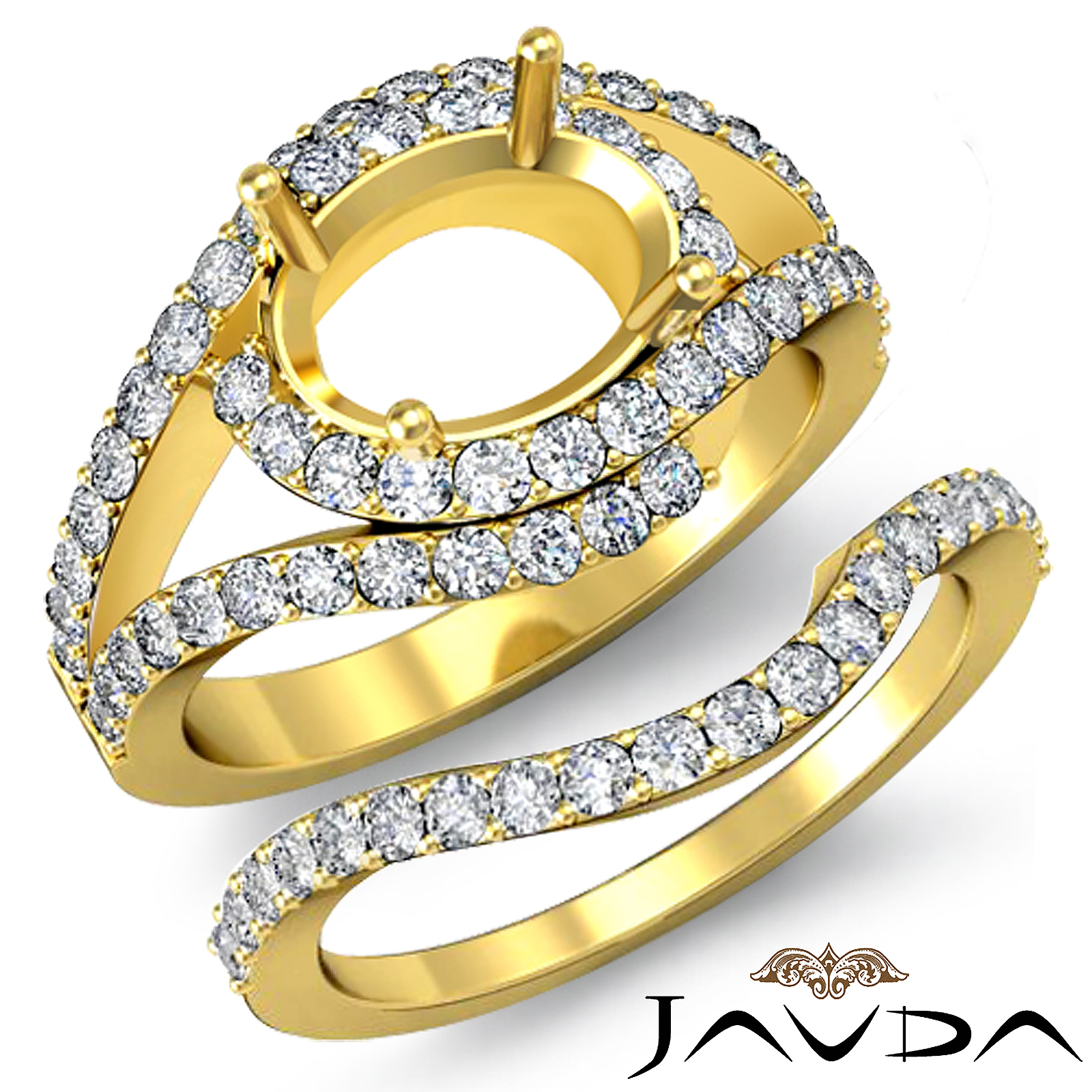 Round Diamond Engagement Oval Ring Bridal Set 18k Gold Pave Setting (1.2Ct. tw.)