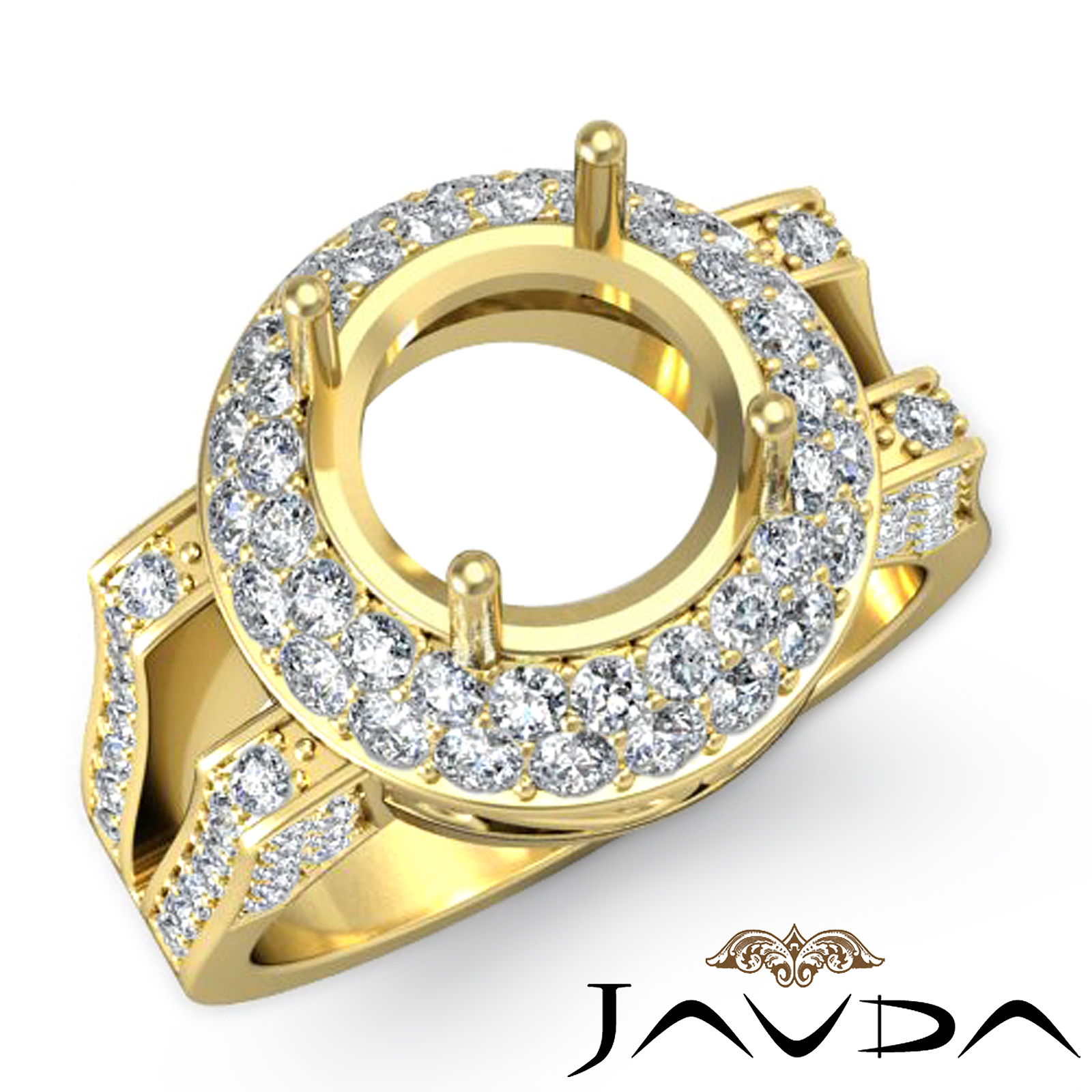 Diamond Engagement Round Ring 18k Gold Halo Semi Mount (1.1Ct. tw.)