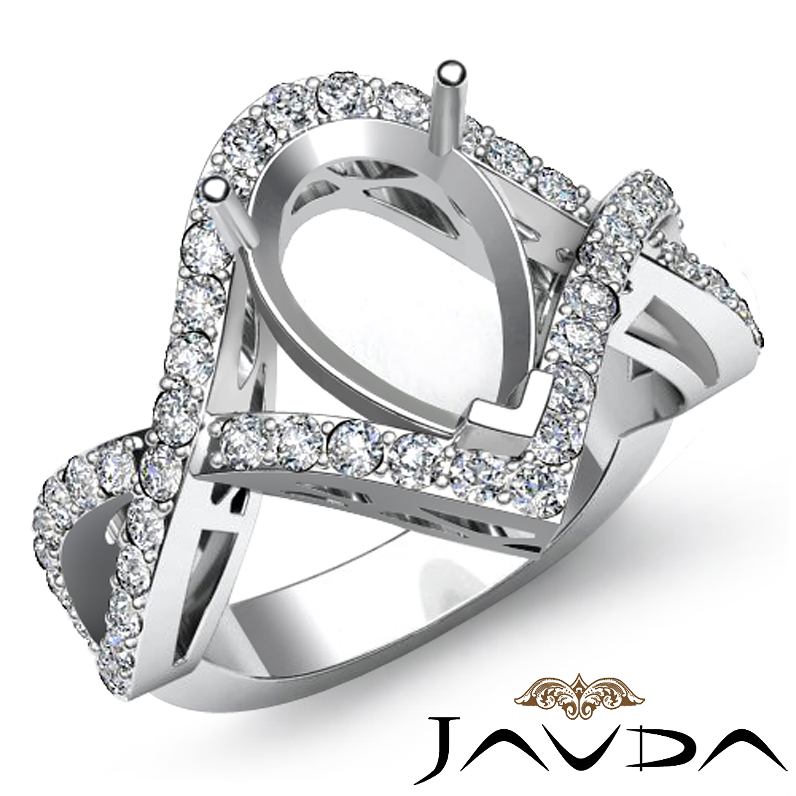 Diamond Engagement Ring Pear Cut Semi Mount 18k W Gold Twisted Shank (0.74Ct. tw.)