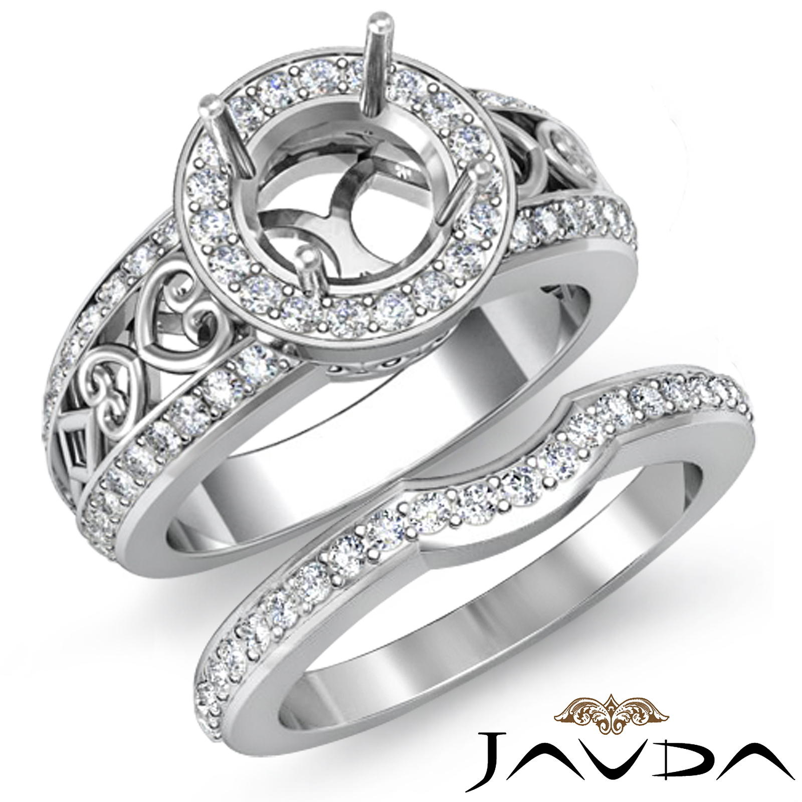 Vintage Diamond Engagement Ring Round Bridal Set Platinum SemiMount (1.52Ct. tw.)