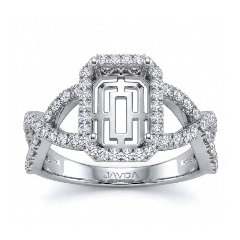 Worthy of your eternal love, this diamond engagement ring is made in Platinum 950 & features an emerald semi mount. It showcases pave set round diamonds in halo & along the split-curved shank. (0.67Ct. tw.)