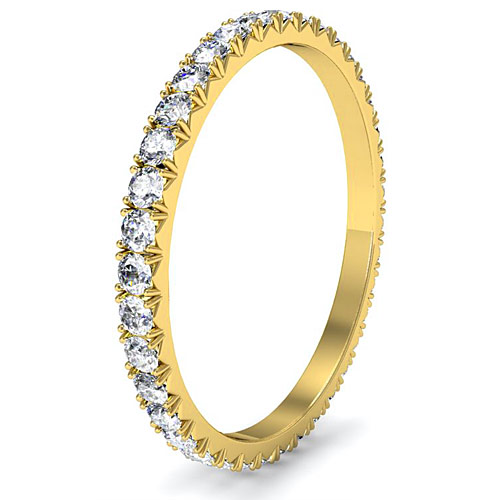 Micro Prong Round Diamond Women Eternity Wedding Anniversary Band Casted in 18k Gold Yellow. (0.6Ct. tw.)