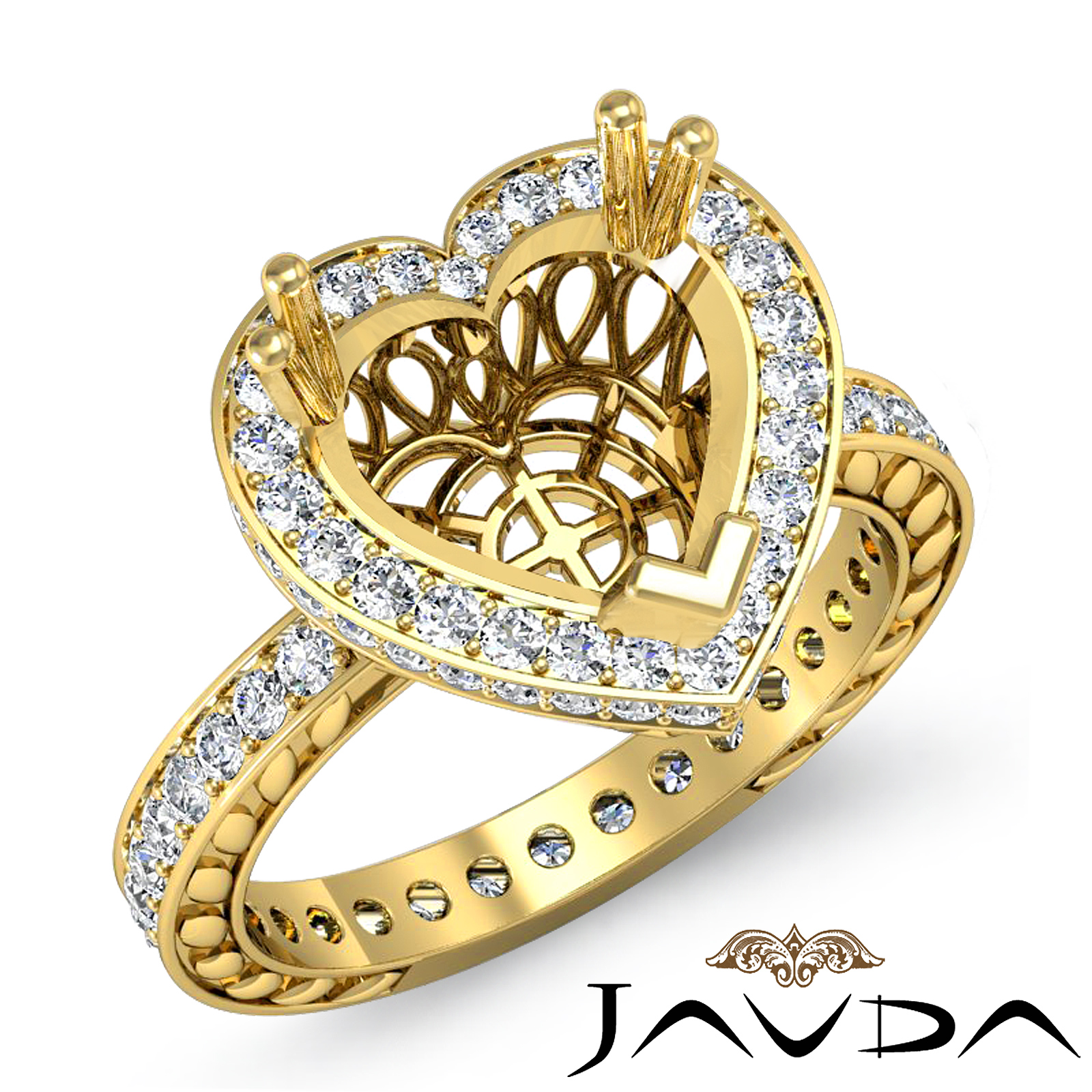 Heart Cut Halo Pave Diamond Engagement Semi Mount Ring in 14k Gold (1Ct. tw.)