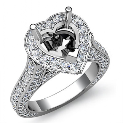 Heart Semi Mount Diamond Engagement Halo Pave Setting Ring Platinum (2.1Ct. tw.)