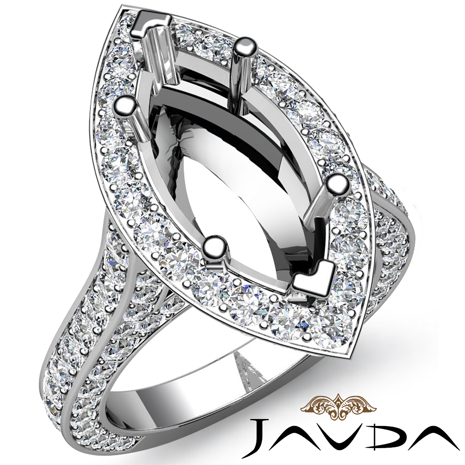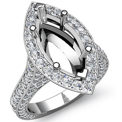 Diamond Engagement Marquise Semi Mount Ring Platinum Halo Setting (2.1Ct. tw.)