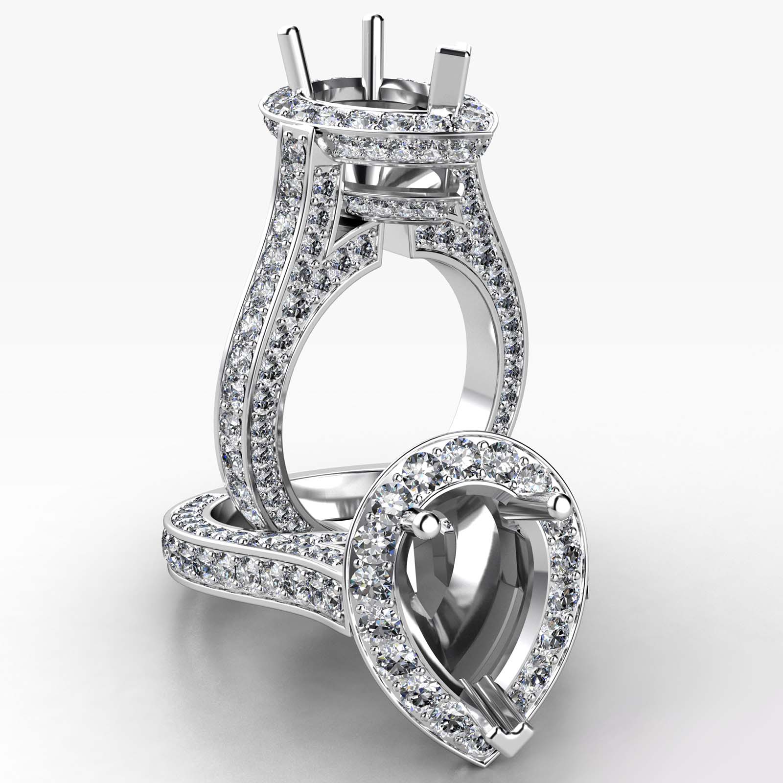Pear Semi Mount Halo Pave Setting Diamond Engagement Ring 18k W Gold (2.1Ct. tw.)
