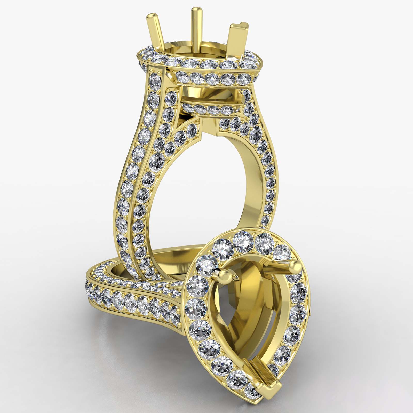 Pear Semi Mount Halo Pave Setting Diamond Engagement Ring 18k Gold (2.1Ct. tw.)