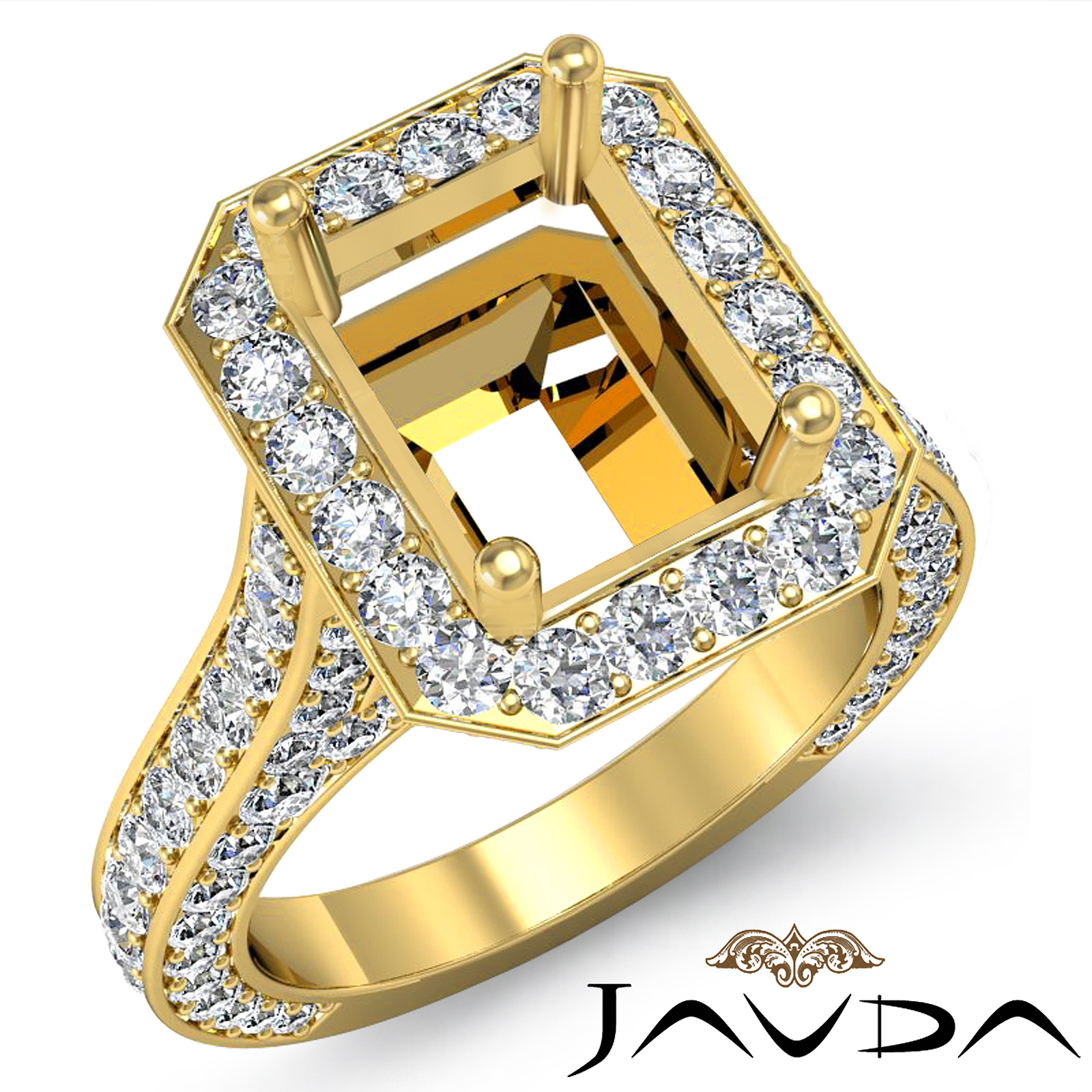 Diamond Engagement Halo Setting Ring Emerald Semi Mount 18k Gold (2.1Ct. tw.)