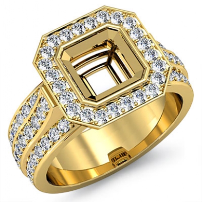 Diamond Engagement Ring Asscher Semi Mount 14k Gold Halo Setting (1.65Ct. tw.)