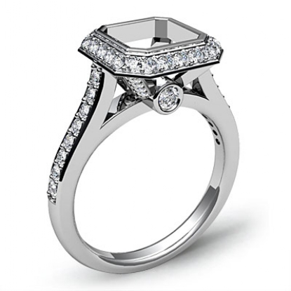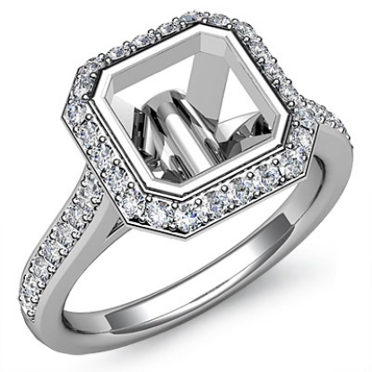 Diamond Engagement Ring 18k W Gold Asscher Semi Mount Halo Setting (0.8Ct. tw.)
