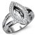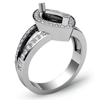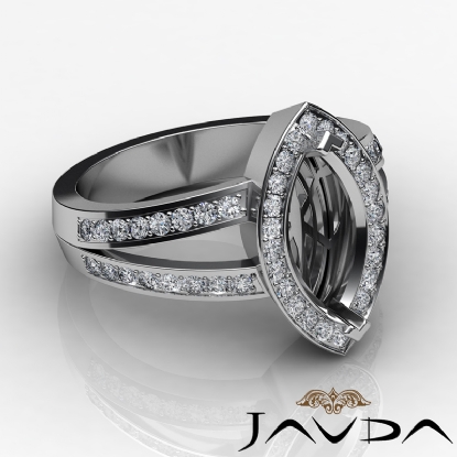 This strikingly sophisticated 18k Gold White engagement ring showcases a marquise semi mount. It features pave set round diamonds in halo & along the shank. (0.55Ct. tw.)