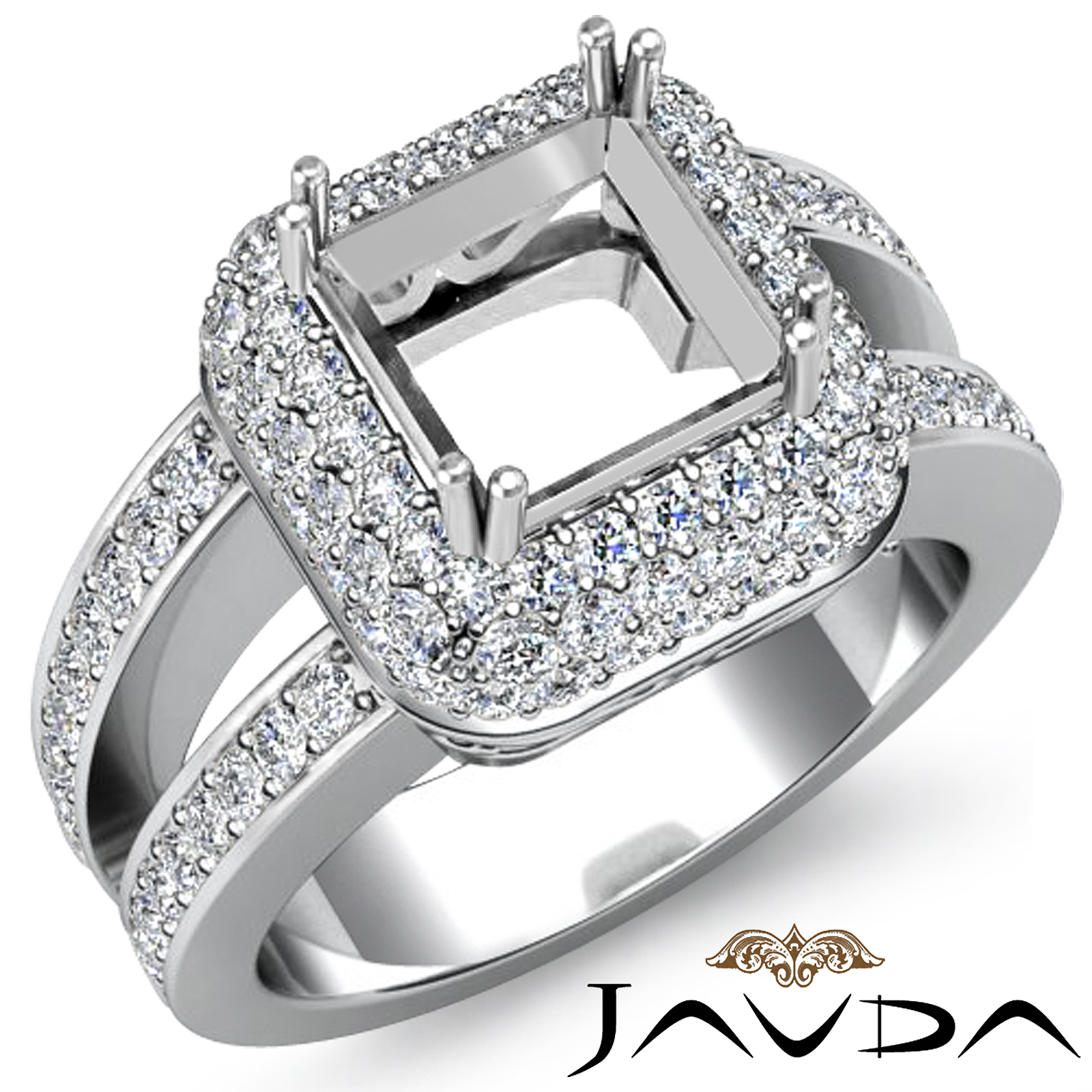 Halo Diamond Engagement Princess Semi Mount Ring 18k W Gold (1.25Ct. tw.)