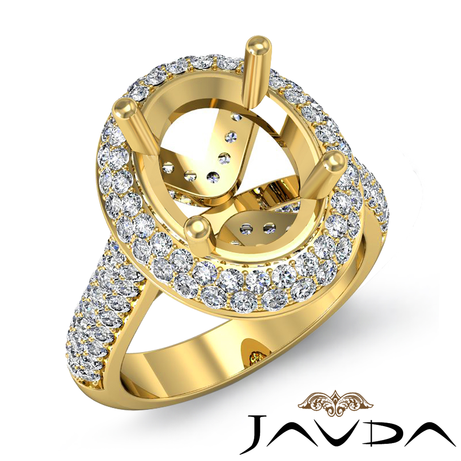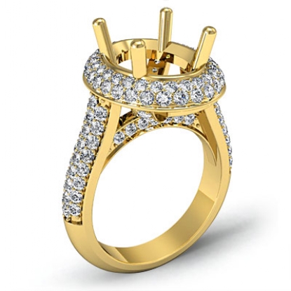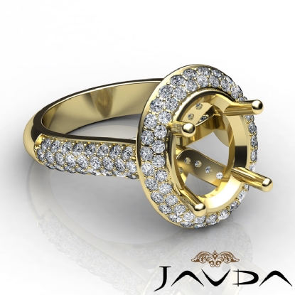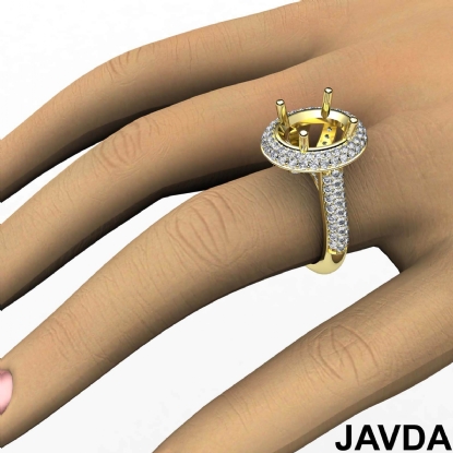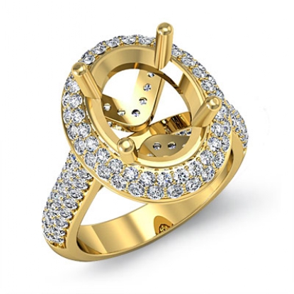 Diamond Engagement Ring Halo Pave Setting 18k Gold Oval Semi Mount (1.5Ct. tw.)