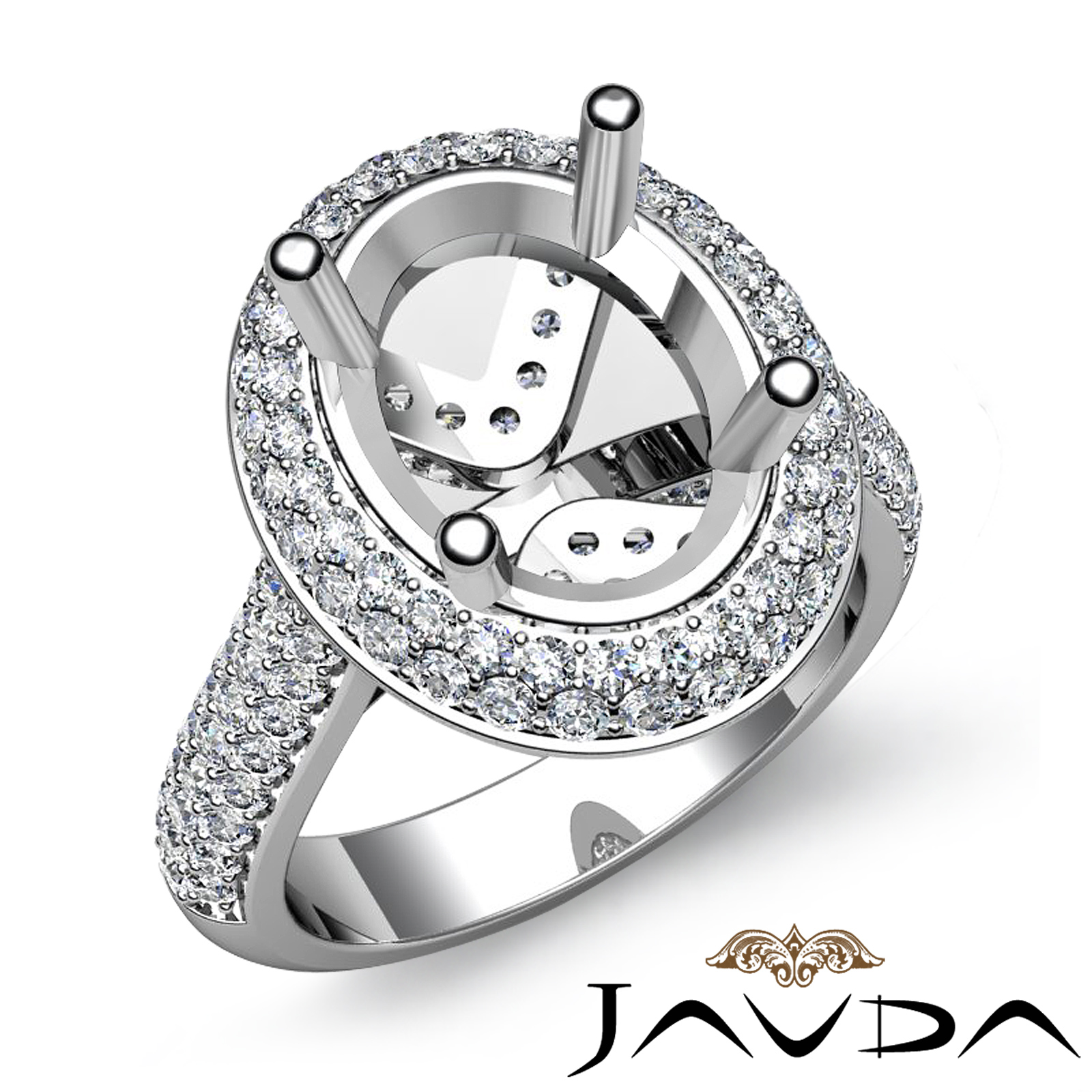 Diamond Engagement Ring Halo Pave Setting Platinum Oval Semi Mount (1.5Ct. tw.)