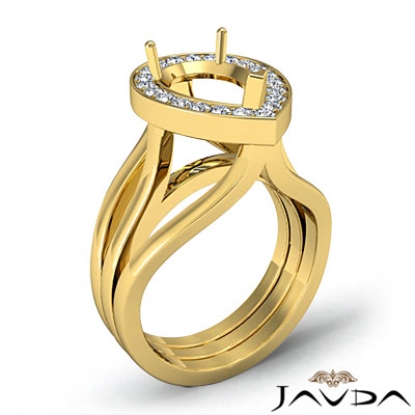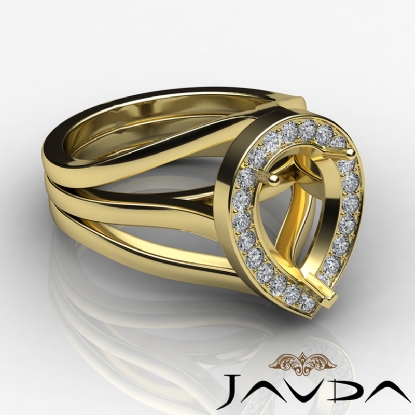 Diamond Engagement Ring Pear Semi Mount 14k Gold Halo Pave Setting (0.4Ct. tw.)