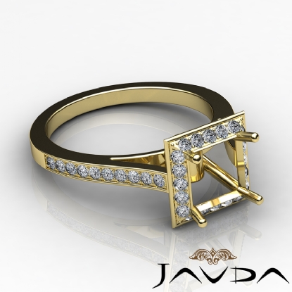 Lavishly romantic, this diamond engagement ring is made in glorious 14k Gold Yellow. This princess semi mount ring features pave set round diamonds in halo & along the shank. (0.7Ct. tw.)