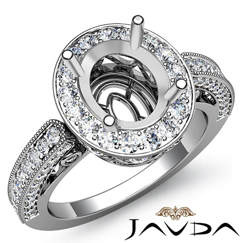 Diamond Engagement Wedding Halo Setting Ring Platinum Oval Semi Mount (1Ct. tw.)