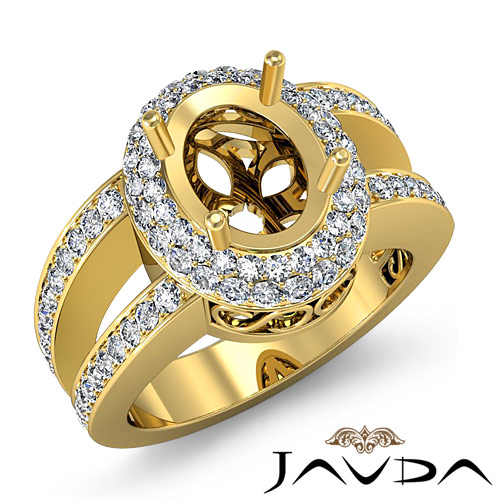 Diamond Engagement Ring 18k Gold Oval Semi Mount Halo Pave Setting (1.35Ct. tw.)