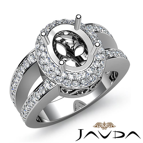 Diamond Engagement Ring Platinum Oval Semi Mount Halo Pave Setting (1.35Ct. tw.)