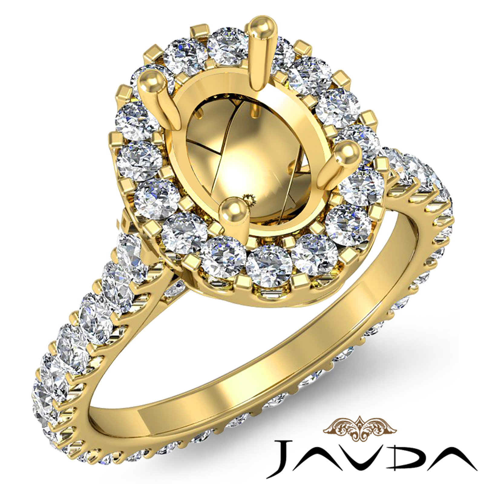 Diamond Engagement Ring 14k Gold Oval Semi Mount Halo Pave Setting (1.5Ct. tw.)