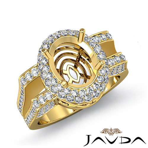 Diamond Engagement Oval Ring 18k Gold Halo Pave Setting Semi Mount (1.1Ct. tw.)