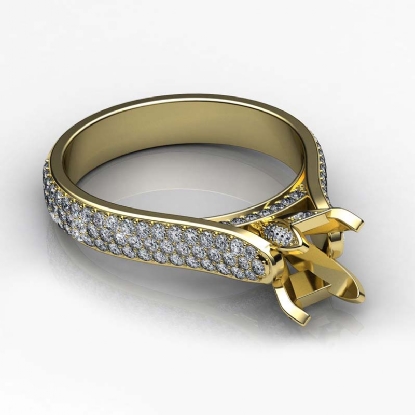 Unapologetically modern, this 14k Gold Yellow diamond engagement ring showcases an oval semi mount. It features round diamonds in pave setting in halo & along the shank. (1.45Ct. tw.)