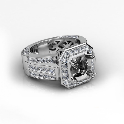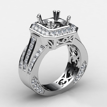 Vintage Engagement Halo Diamond Ring Semi Mount Platinum (1.65Ct. tw.)