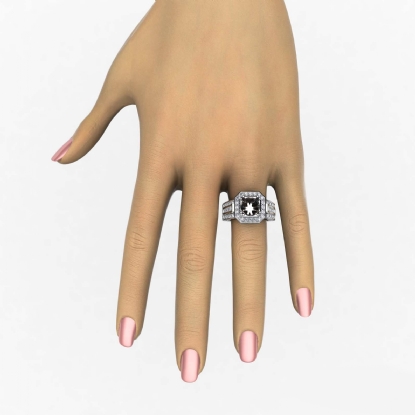 Made in Platinum 950 & vintage in design, this women's diamond engagement ring showcases a semi-mount halo of round pave-set diamonds, along with princess diamonds in channel setting on the shank. (1.65Ct. tw.)