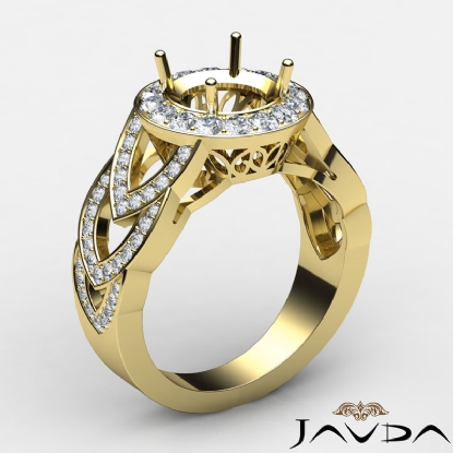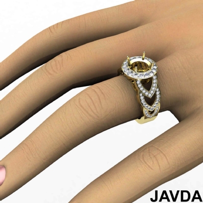 Round Semi Mount Diamond Engagement Ring Halo Pave Set 14k Gold Band (1.25Ct. tw.)
