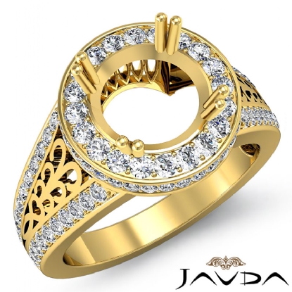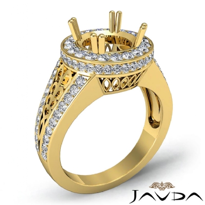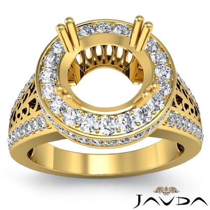Round Halo Pave Setting Women's Diamond Engagement Unique Ring Wedding Band made in 14k Gold Yellow and can be set in Round Semi Mount. (1.35Ct. tw.)