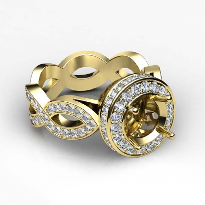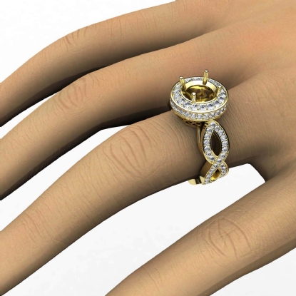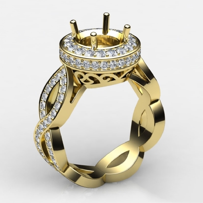 Undeniably striking, this 14k Gold Yellow diamond engagement ring showcases a round semi mount in halo setting, with pave set round diamonds dazzling on the halo and the beautiful criss-cross shank. (1.3Ct. tw.)