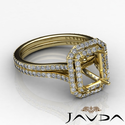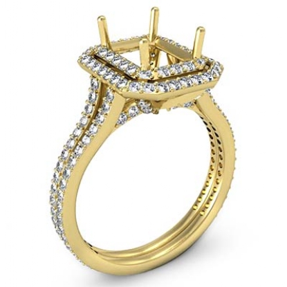 Halo Setting Diamond Engagement Emerald Cut Semi Mount Ring 18k Gold (1.6Ct. tw.)
