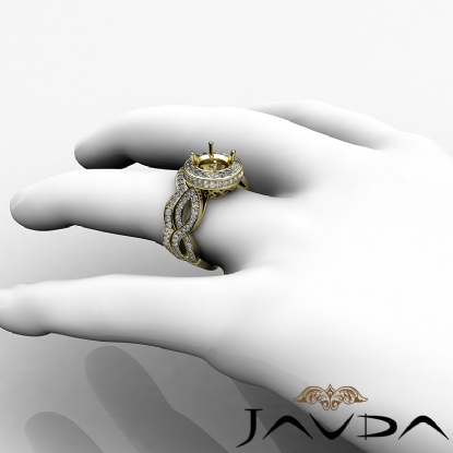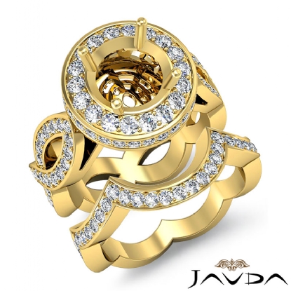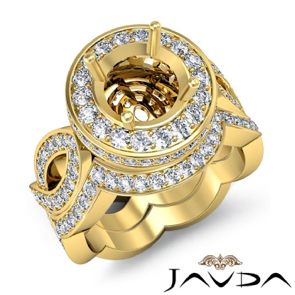 Capture your lasting love with this 14k Gold Yellow semi mount bridal set showcasing a drape of pave set diamonds in halo and along the twisted shank. This engagement ring comes with a matching band. (1.8Ct. tw.)