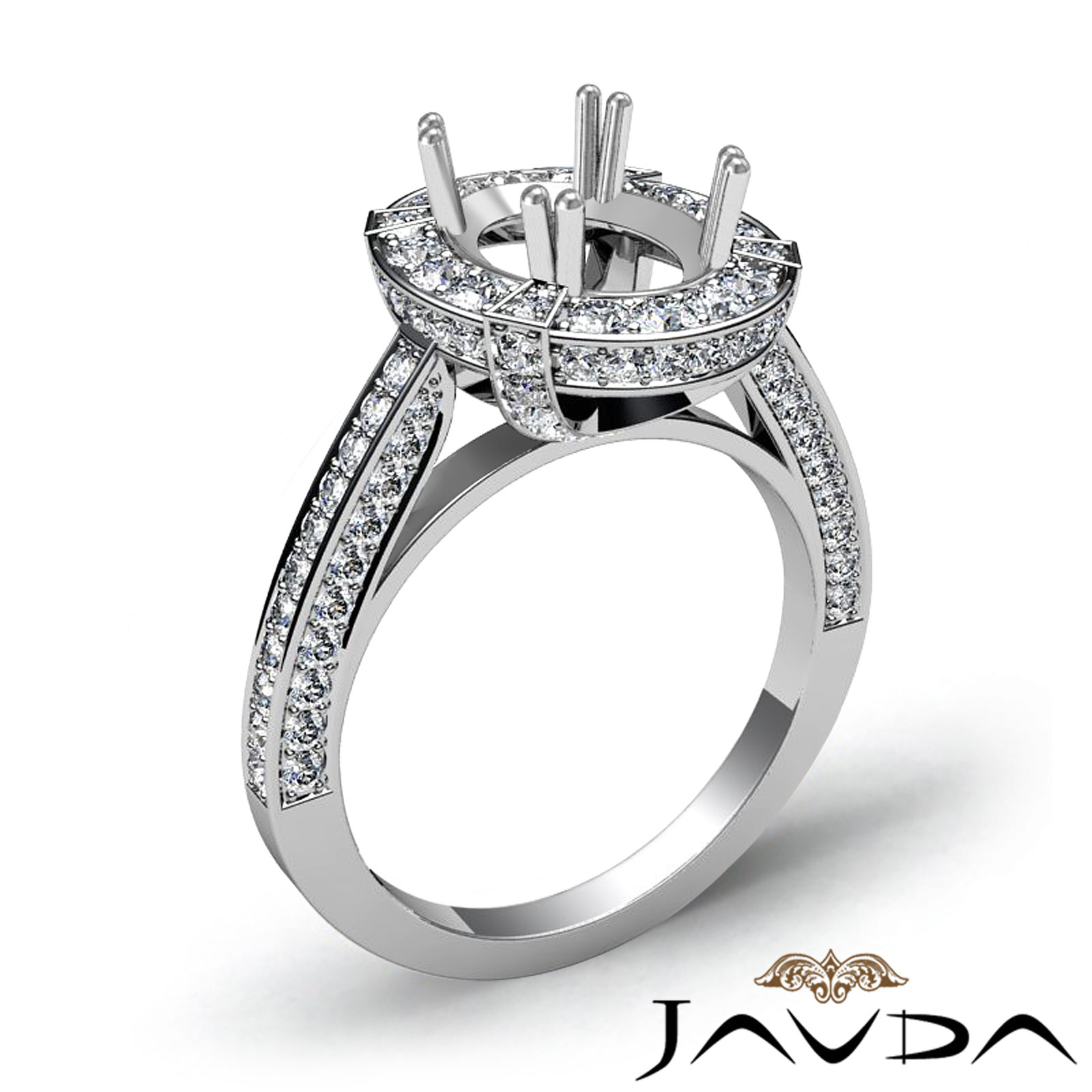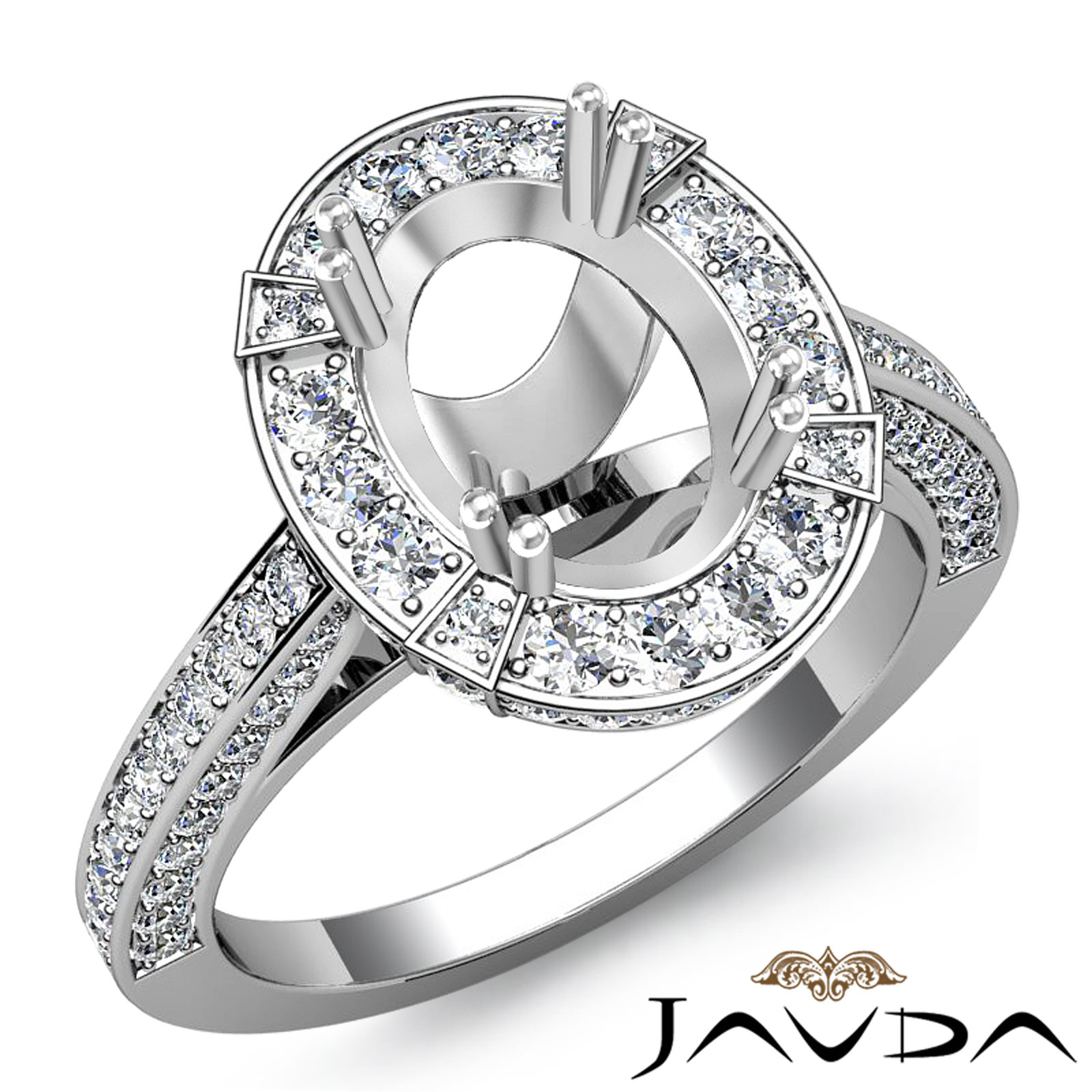 Halo Pave Setting Diamond Engagement Ring Oval Semi Mount 14k Gold (0.76Ct. tw.)