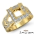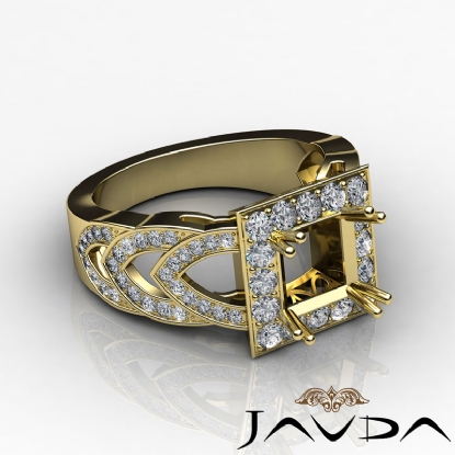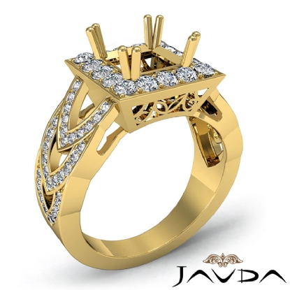 Graceful in design, this classic yet distinctive princess semi mount engagement ring is made in lustrous 14k Gold Yellow. It showcases round diamonds in pave setting on halo & along the shank. (1.25Ct. tw.)