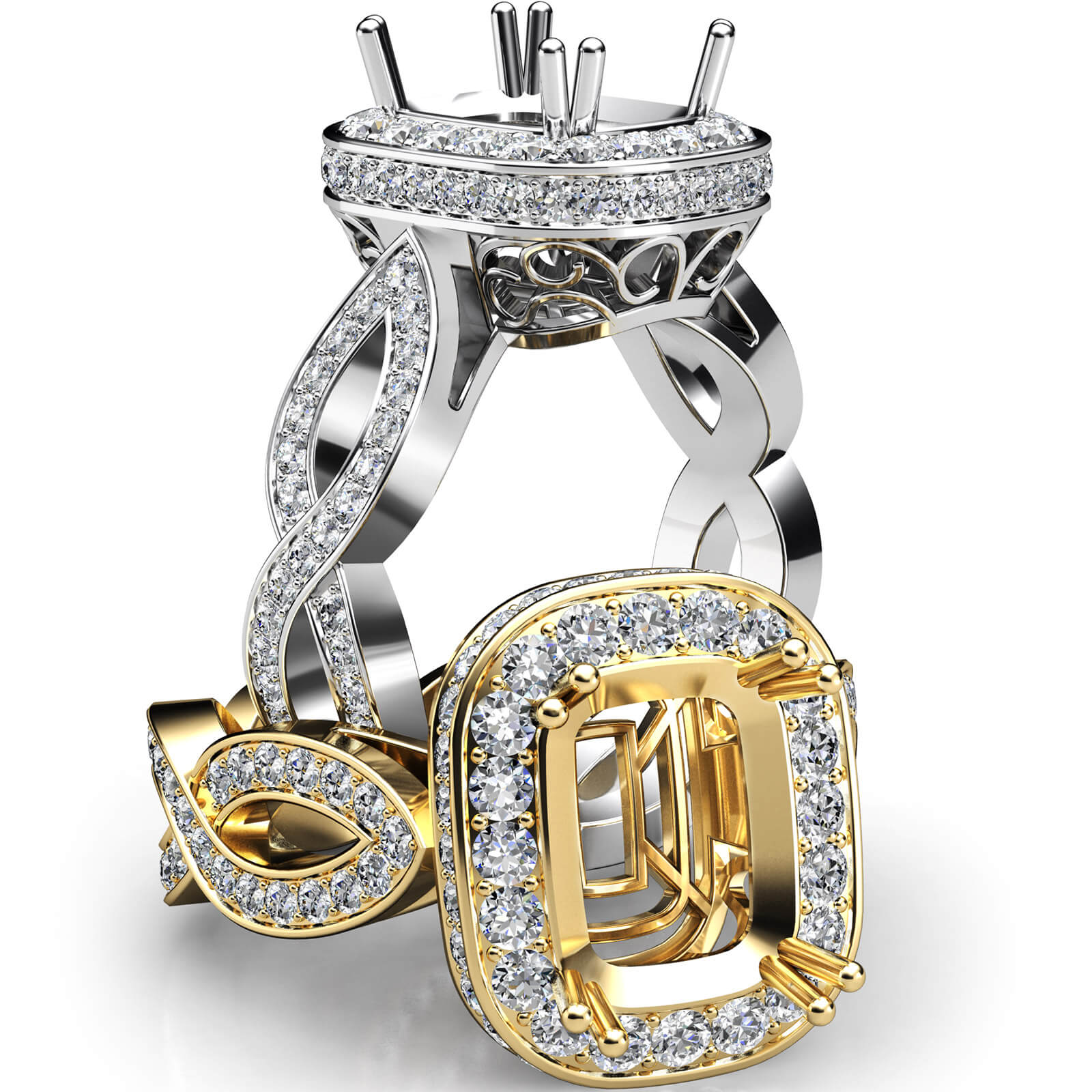 Cushion Semi Mount Diamond Engagement Ring 18k W Gold Halo Pave Set (1.3Ct. tw.)