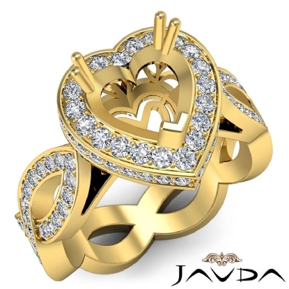 Diamond Engagement Heart Semi Mount Halo Pave Setting Ring 14k Gold (1.3Ct. tw.)