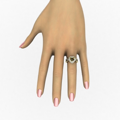 Striking yet forever timeless, this 14k Gold Yellow diamond engagement ring has a heart shaped semi mount. It features round diamonds in pave setting on halo & along the shank. (1.3Ct. tw.)